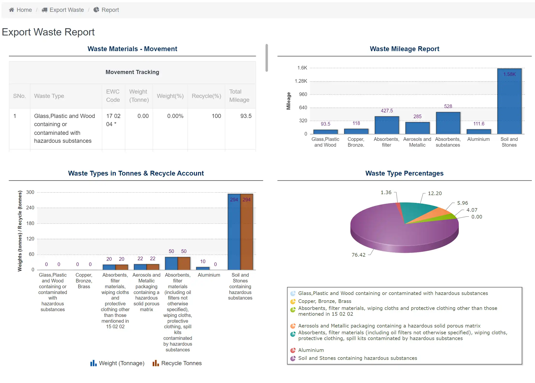 • Waste & Materials Movement Tracking: